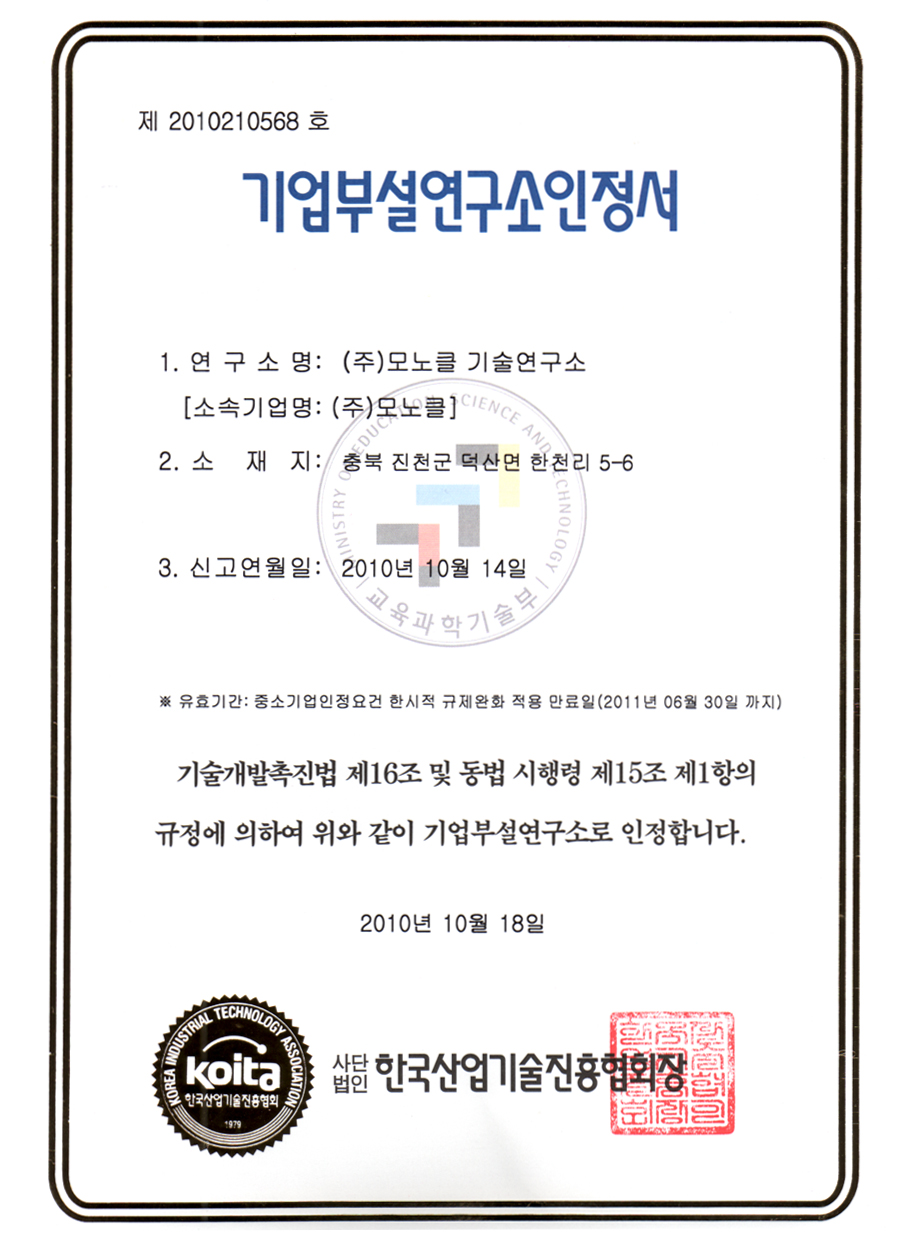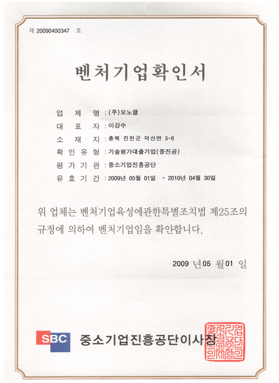 기술혁신형 중소기업(INNO-BIZ) 확인서