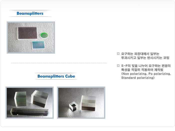 첫화면 > 제품소개 > 광학부품 > Beamsplitters